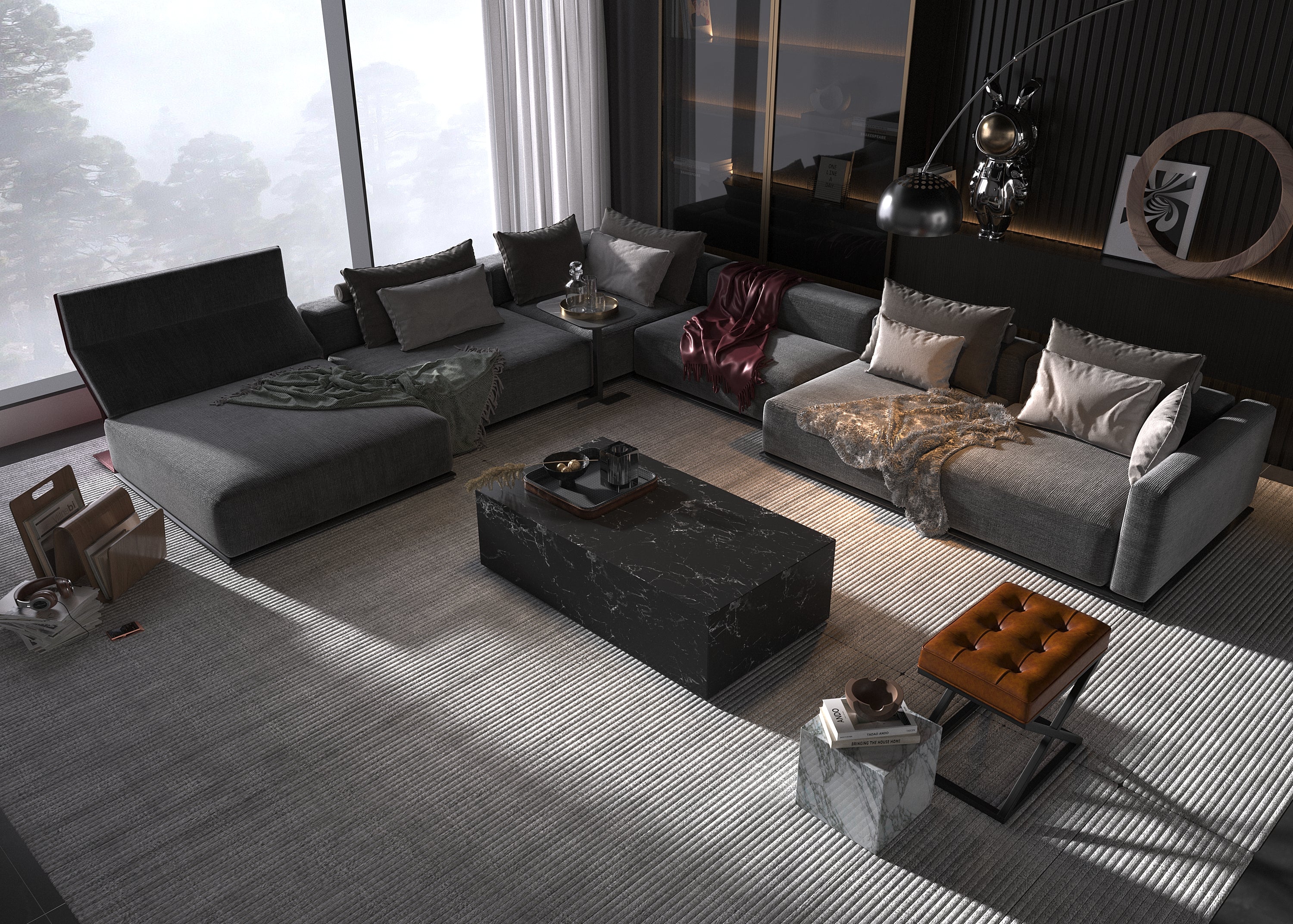 Stone Block black marble center table with striking white veins